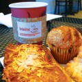 The cafe gets its ice cream from Humphry Slocombe, a premium (and quite unusual) ice cream company in San Francisco. Of the roughly 20 establishments that currently carry Humphry Slocombe, Bitter+Sweet is the only one in the South Bay. It is some of the best, sweetest ice cream I’ve ever tasted, plus it’s doled out in 3-ounce scoops, so it doesn’t feel like you’re overdoing it (unless you get two scoops). In addition to somewhat standard flavors like Tahitian vanilla and bittersweet chocolate, you can indulge in such atypical flavors as Vietnamese Coffee (which tastes like the sweetest, creamiest java ever) and Secret Breakfast (made of bourbon ice cream and corn flakes, although it evoked eggnog and cinnamon rolls for me). Single scoops are $3.25, double scoops $4.50. Bitter+Sweet also offers affogatos (ice cream swimming in a shot of espresso) for $4.75, pastries (from Satura Cakes) for $2 and $3.25, and paninis made in-house for a bit over $7.