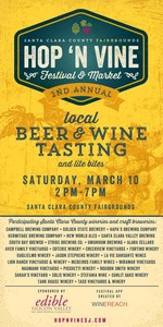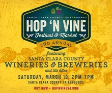 Please join us for the 2nd annual Hop 'N Vine Festival & Market in Pavilion Hall at the Santa Clara County Fairgrounds on Saturday, March 10, 2018 from 2 - 7 pm.This fun event will feature tastings from some of the amazing wineries and craft breweries located right here in Santa Clara County, as well as lite bites, a history exhibit, great lectures in the "Hop 'N Vine University" and entertainment.