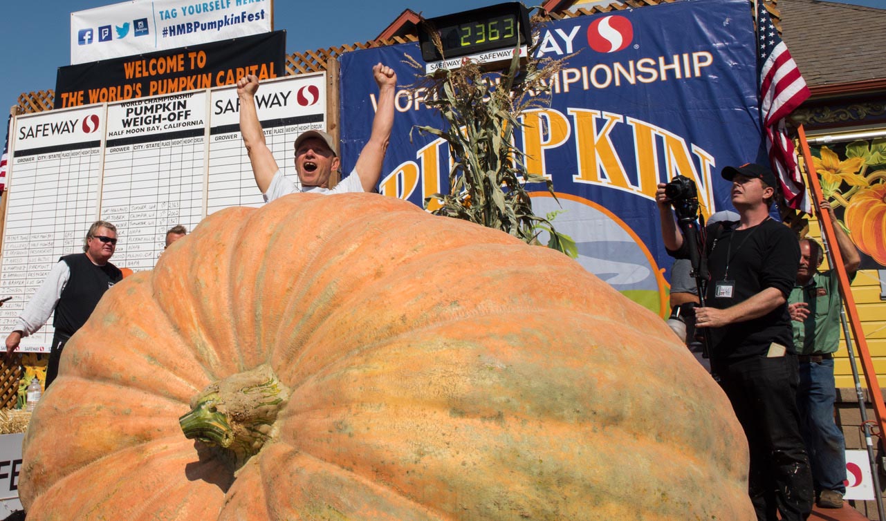 No weigh. Weigh!!! Bring it on burly, beefy behemoths! No weigh? Weigh! The excitement is building in Pumpkintown as the World’s Greatest Gourd Growers and their titanic, mind-blowing, Volkswagen-sized orange orbs hope to squash the world record on Monday, October 8 at the 45th Safeway World Championship Pumpkin Weigh-Off –– the “Super Bowl of Weigh-Offs” –– in the World Pumpkin Capital of Half Moon Bay, California. Organizers are offering a humongous top prize of $7 per pound and $30,000 in total prize money for a new world record pumpkin entered at Half Moon Bay (the current world record is 2,624-pounds set in 2016). A host of accomplished, grizzled veteran growers will contend for the coveted title, the $30,000 world record prize and thousands of dollars in additional prize money. In a pay-by-the-pound system, the winner is guaranteed a hefty $7 per pound for the champion mega-gourd plus a starring role in the world-famous Half Moon Bay Art & Pumpkin Festival, Oct. 13-14 (including a free weekend at the posh, pumpkin-centric Ritz-Carlton on the stunningly beautiful Half Moon Bay coast). Superstar grower Joel Holland’s gorgeous and gargantuan 2,363-pound weigh-off champion mega-gourd set a new American record and obliterated a formidable field of heavyweight contenders in winning the 2017 Safeway World Championship Pumpkin Weigh-Off. Beauty will share center stage with beefy brawn with a $500 prize awarded to the “most beautiful pumpkin” as judged by the audience based on color, shape and size.Using forklifts and special harnesses, the gargantuan gourds will be carefully placed on a 5-ton capacity, industrial-strength digital scale under the watchful eye of officials from the San Mateo County Agricultural Commissioner's Office of Weights, Sealers, and Measures. Half Moon Bay’s Weigh-Off will serve as an officially sanctioned Great Pumpkin Commonwealth (GPC) site.