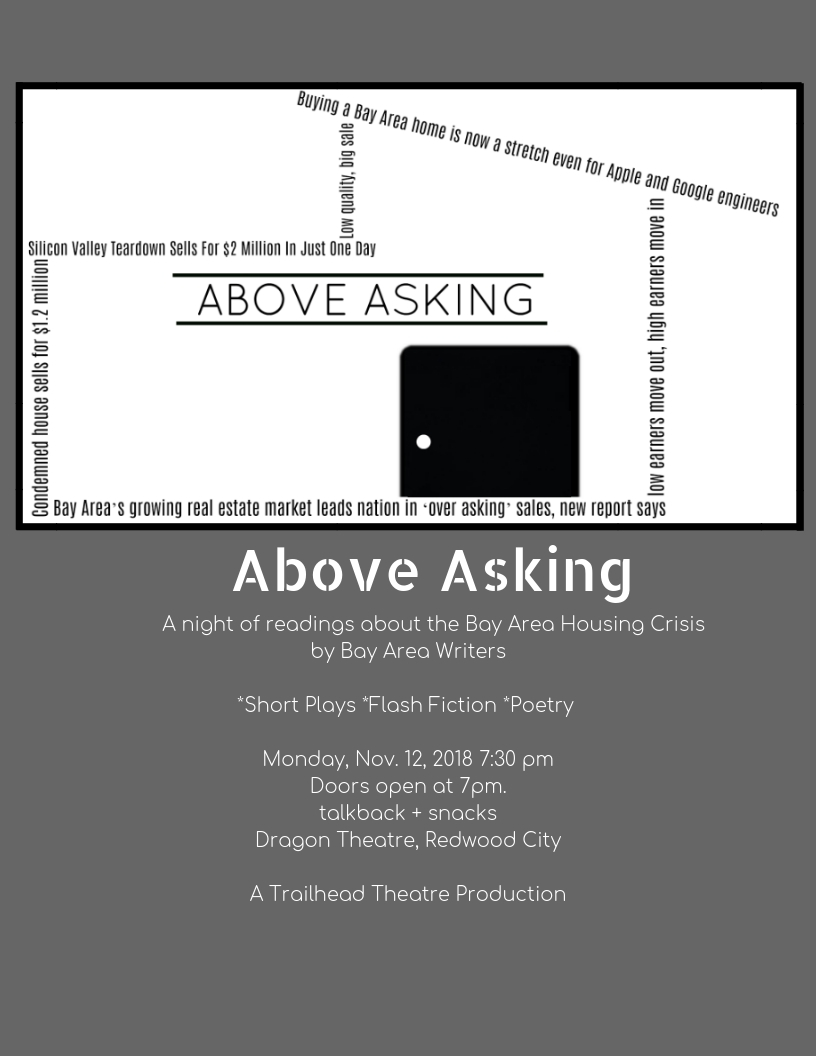 ABOVE ASKING: A Night of Readings about the Bay Area Housing Crisis by Bay Area Writers*Short Plays *Flash Fiction *Poetry