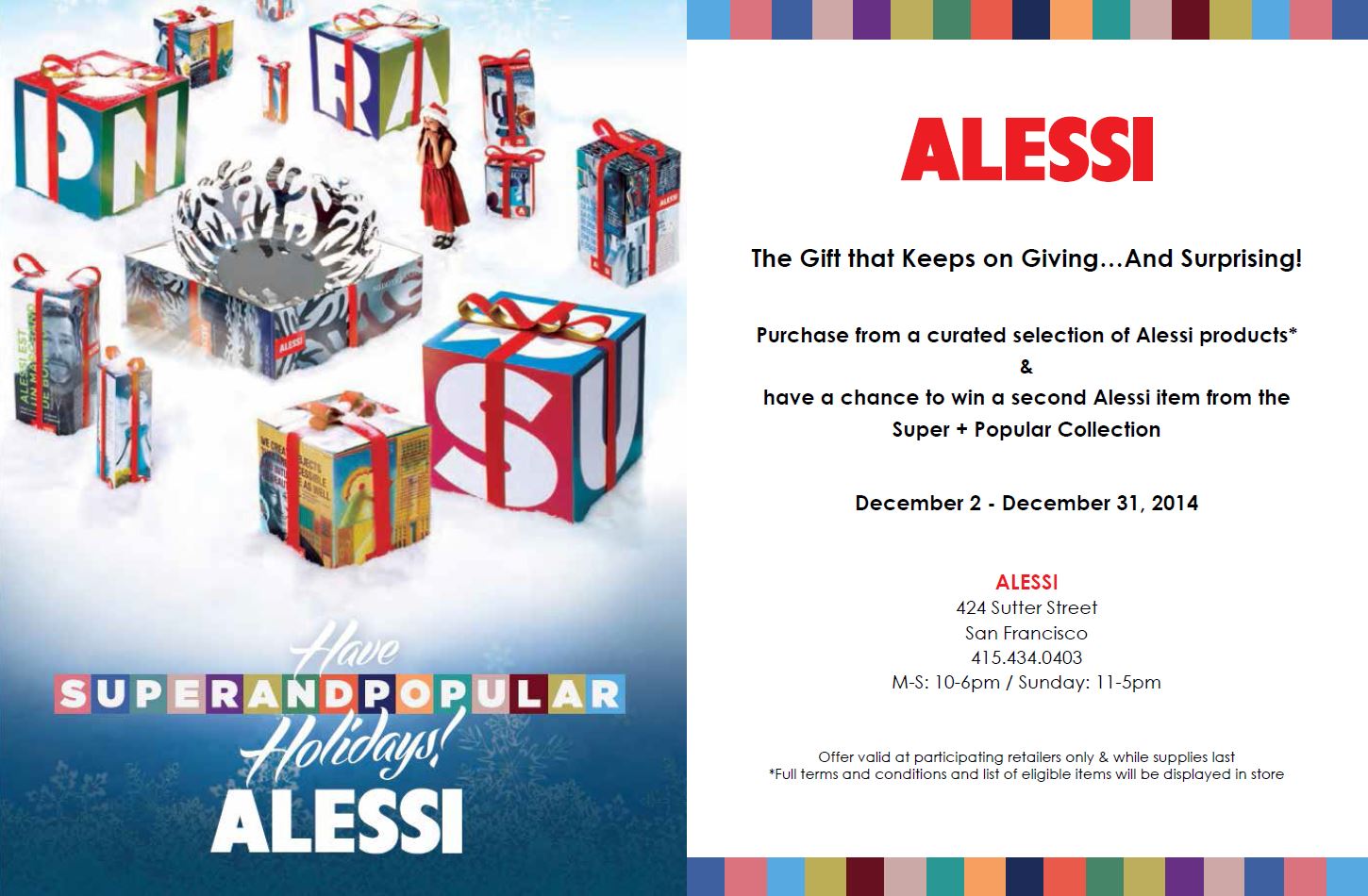 Purchase from a curated selection of Alessi products and have a chance to win a second Alessi item from the Super + Popular Collection.More Info