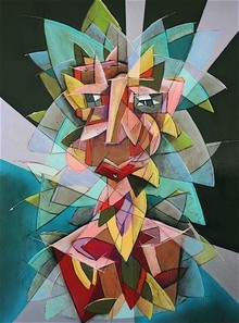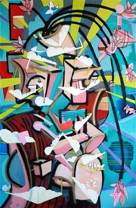 Joey DeRuy draws his work from the technology age as well as his own personal narratives. Influenced by Futurism, his work is a social commentary on his view of humanity. Using the techniques of Cubism he depicts his subjects from a multitude of view points to personify his chosen subjects in an altered context. Joeyʼs work has graphic as well generally figurative elements which communicate individual stories relating to the human experience during a time of constant societal upheaval. Creating a literal depiction of history, humanity, speed, and industry, Joey invites spectators to partake in this new world order.