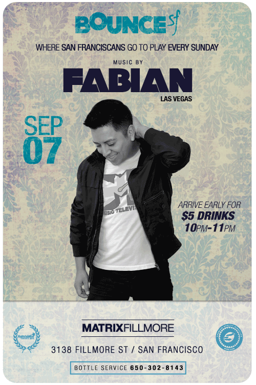 Bounce has quickly turned into his favorite party in SF, and we’re excited to host Fabian for what is sure to be the best Sunday party in the city. Make sure to come out to MatrixFillmore this Sunday and join in the fun!