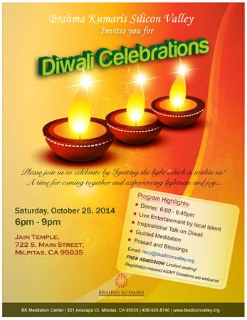 Brahma Kumaris Silicon Valley invites you for Diwali Celebrations