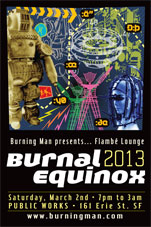 Burning Man presents…BURNAL EQUINOX 2013 Flambe Lounge art salon & mixer!Saturday, March 2rd!