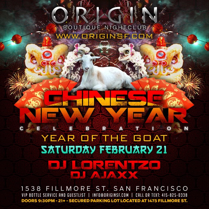 Happy Lunar New Year from ours to yours! Join us at Origin - The Boutique Nightclub for a spectacular Lunar New Year Celebration! We're paying homage to the year of the Goat and we won't be skipping any beats this Saturday. Kick off your Lunar New Year off with lion dancers and dragon troop performers!