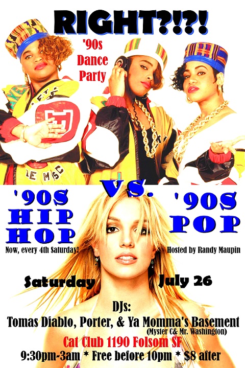 SATURDAY JULY 26th. RIGHT?!?! (the 90s video dance party)90s POP vs 90s HIP HOP