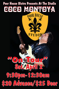 Special Show! Saturday April 2nd 9:30pm-12:30am withCoco Montoya (ON TOUR) in the Poor House Bistro Private Studio Call for your reservation today! $20ADV/$25DOOR
