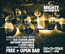 On Friday, August 1st, 2014 Mighty Presents "DIS·CO·THEQUE" a special tribute to disco and disco house music. We have assembled one incredible lineup of DJ veterans from the Bay Area to rock disco classics, edits, remixes, nu-disco, and disco house records.