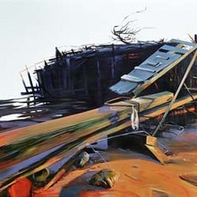 Shankman's process varies, but most of these images were inspired directly by places along the front range of the Rocky Mountains, where mining attracted a wave of ambitious settlers in the mid- to late-1800s. Abandoned homesteads dot the open space and are intrinsic to the landscape. Using photographs and sketches as starting points, Shankman translates this realistic imagery into a more interpretive aesthetic of decay and abandonment.