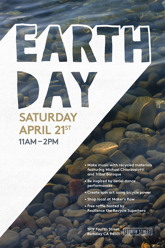 What: Come celebrate Earth Day at Fourth Street, an urban shopping and dining destination in Berkeley, this year with a few inspiring and eco-friendly activities that will delight the senses and play an ode to sustainability. We look forward to a day filled with making music with recycled materials featuring Michael Chiaravelotti and Tribal Baroque, special aerial dance performances, creating spin art with bicycle power, and a free raffle hosted by Resilience the Recycle Superhero. Visitors can also shop at Fourth Street’s Maker’s Row to support local talent, with a rotation of maker’s selling everything from jewelry, apparel, home goods, handbags art, beauty and more.Where: 1919 Fourth Street, Berkeley, CA 94501