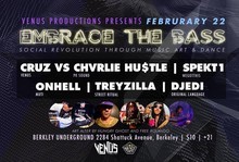 FB EVENT PAGE: https://www.facebook.com/events/854234457952918/When one door closes, there is another door that always opens! Embrace the Bass will now be located in the heart of Downtown Berkeley at the beautiful Berkeley Underground! Bass will be thumpin’ all night with our hot lineup, plenty of room to groove on the huge dance floor, 2 full bars, and plenty of areas to chill with your friends. So come out Sunday, February 22nd to embrace some bass!