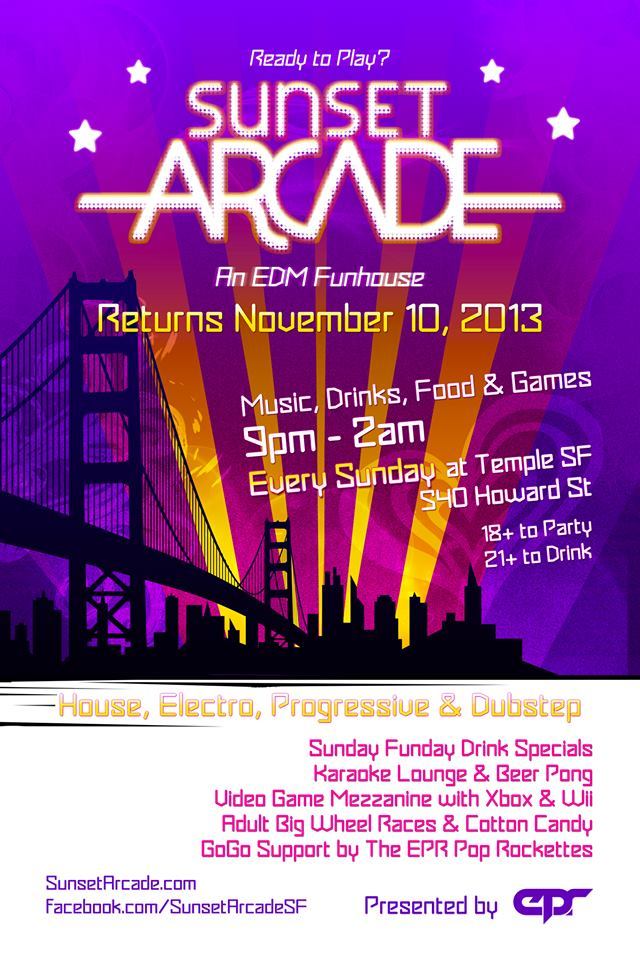 To celebrate the 3 day holiday weekend SUNSET ARCADE decided to elevate our game... ANTISERUM up close and personal! No work or school on Monday so things are certain to get out of hand. EPR and Sunset Arcade is the only place to party on Sunday nights... don't settle for imitations.