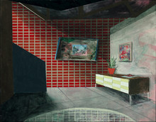 Transmission Gallery is pleased to present the work of Erik Parra. each devil his own will be an exhibition of paintings, drawings and a site specific installation that draws on tropes of the horrific, mid-century aesthetics & politics to ask questions about the origins of certain, current sociopolitical narratives in the vernacular of pictorial construction. In three small series of original compositions Parra conflates his personal history and knowledge with mid-century historical narratives in order to view important, current social concerns through the lens of history. This serves as an entryway into a process of constructing images that draw on our conceptions of space and the stories we tell ourselves in order to navigate the environments we build.For this exhibition the interior plays host to a range of potential conversations related to aesthetics, politics and history. Central to this exhibition is an examination of postwar historical narratives; such as white flight and the American space program and their challenging effects on contemporary society. Both darkness and lightness are employed to present not only familiar looking interior spaces but also for their expressive narrative effect. Objects within each painted interior are chosen for the potential of their symbolic form to be both simultaneously loaded and banal. This duality then resonates with similar formal choices within the work and drives the potential to open new space to create productive dialogue with the attendant issues. Parra is interested in drawing on our collective cultural memory as informed by the histories of painting, film, aggressive underground music and radical politics in order to paint a critical, collective self-portrait at a very critical time.