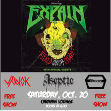 Canadian Progressive Thrash Masters, Expain, continue their US October dates of the Kicked Outta Canada Tour with San Jose locals, Aseptic, Varnok and Ethonicide. Heavy metal to melt your face right off your skull.More Info