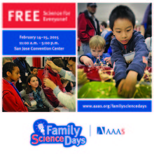 Explore interactive science exhibits, learn about cool science jobs, and have your questions answered by scientists! Family Science Days are FREE and open to all, and features hands-on demos, shows, talks by scientists, and other activities appropriate for K-12 children and their families.This free community science showcase is brought to you by AAAS, in partnership with the Bay Area Science Festival. The event also features a broad range of educators and scientists engaging the public in current science topics.