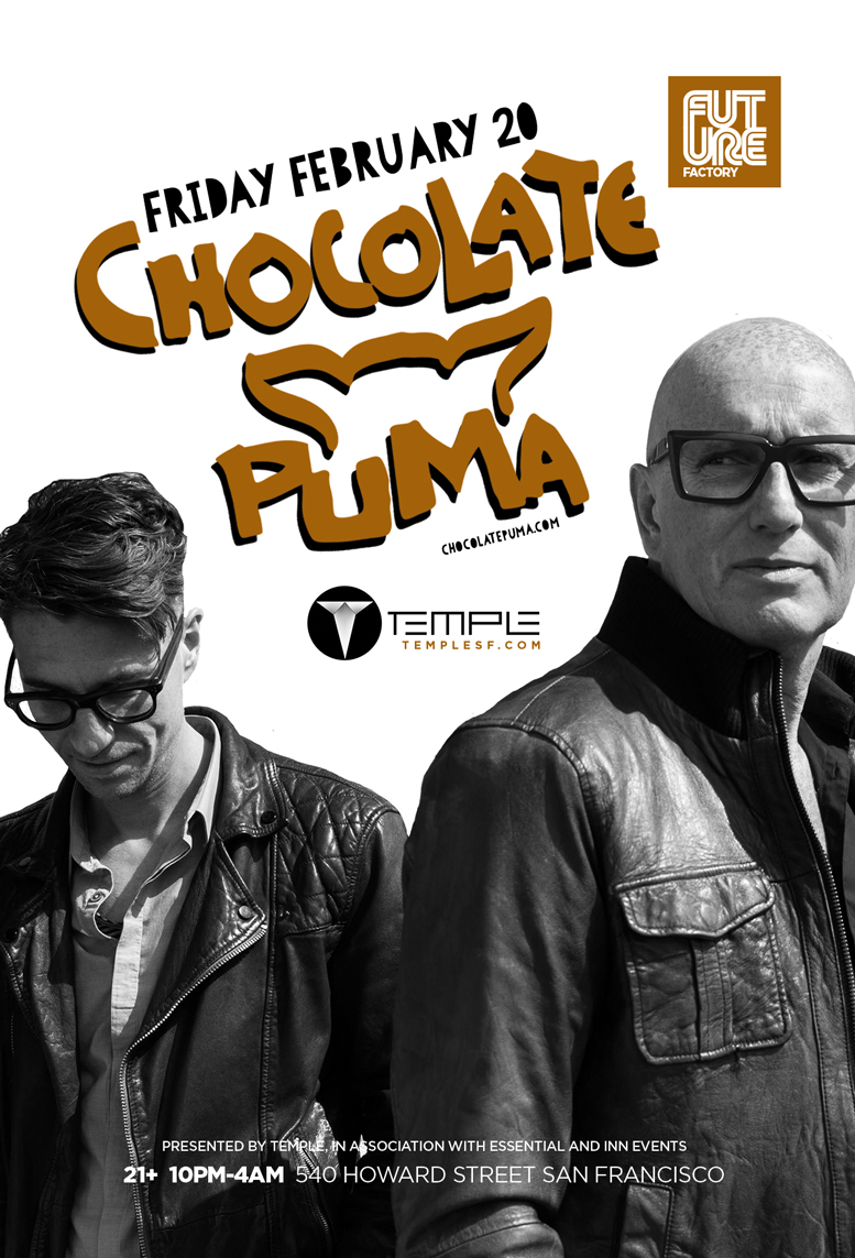 February 20th’s Future Factory headlining DJ duo needs no introduction. Their résumé includes a handful of chart-topping productions, a successful record label, support from some of the biggest DJs in the world, and over 20 years of production and DJ experience. This week, #TheNewTemple is excited to host Rene and Gaston, better known as Chocolate Puma, at our weekly Future Factory event!With both commercial and underground success to their credit, Chocolate Puma has developed a style that is uniquely their own. Clean, catchy hooks, sharp percussion, and strong vocal performances define the Chocolate Puma sound, but this duo is by no means confined to any one genre. In a music scene that is littered with mediocrity, Chocolate Puma continues to set ever-higher standards for both themselves, and their contemporaries. In 2015, Chocolate Puma remains as a benchmark of excellence, hard-work, and talent.