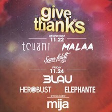 The Give Thanks festival lays claim to being the largest Thanksgiving weekend electronic dance music event in Northern California. The three-day festival begins Wednesday with the Parisian DJ duo of Tchami and Malaa. Their latest single, "The Sermon" comes from their upcoming collab EP, No Redemption. Malaa's old-school style blends with Tchami’s new-school tone synergistically, putting a distinctly modern twist on breakbeat-driven '90s house. The Las Vegas-based American producer 3LAU headlines the Friday-night show with his maximalist laser-beam beats, while the Mad Decent-signed L.A. duo Slander close out Saturday with their signature "heaven trap" sound.