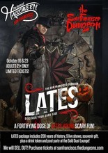 The Home of Halloween, The San Francisco Dungeon, dares you to visit during our 21+ adult only LATES on October 16th and 23rd! Join the Trickster as you experience 200 years of history through 9 live actor shows! But beware of The Lady of Stow Lake as she's been known to scare visitors from time to time.Tickets for LATES are $40 and include our adult themed San Francisco Dungeon experience ($26 value), souvenir photo book ($34.98 value), and drink token ($10 value) and after party at The Gold Dust Lounge on Fisherman's Wharf - YOU SAVE OVER $30. 21+ ONLY.