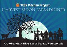 Harvest Moon Farm Dinner, a farm to table”dinner and auction benefiting the Teen Kitchen Project, is being held on Saturday, October 4th, 2014. The evening, a fundraiser for the organization, will feature a three course, organic and locally sourced meal, amidst the beautiful Corralitos hills at Live Earth Farm.A special menu has been designed by Teen Kitchen Project’s Executive Chef Stephanie Forbes alongside their Teen Chefs. Attendees will also enjoy live music and an auction.