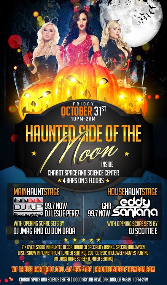 Get ready for a fantastic night full of amazing costumes and spooky jaw-dropping decor at the Chabot Space & Science center overlooking the SF bay! Witness the science center transformed into an out of this world, horrific destination for one night only. The museum will remain open and will showcase horror movie screenings all night and a rockin’ laser light show inside the planetarium. Experience the Chabot Space and Science like never before!Details: