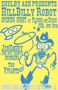 HiLLBiLLY ROBOT returns for round two! The festival, we mean event, runs every weekend in February and features a variety of urban-flavored Americana; from classic country to alt-country to traditional bluegrass to outlaw bluegrass to raw-n-roll blues to indie-pop with hints of twang. This year's event welcomes the return of "Portland Invasion" (yeah!) and new show "Songs of '69: a Tribute to an Amazing Year in Music", plus popular festival mainstays; "Honky-Tonk Showdown", "Bluegrass Bonanza", "Americana Jukebox", and a CD release show! No matter what your listening pallet may be (city or country) we've got a little something for everyone. So break out your bestest overalls, spit-shine your boots, and head on down to Hillbilly Robot for some good old-fashioned downhome music.JON EMERY & THE DRY COUNTY DRINKS (Sacramento)