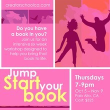 Jump Start your book is a six-week course designed for projects in fiction, memoir, or non fiction at any phase of development. Don’t worry if you don’t consider yourself a writer; the only thing you need is the intention to write a book and a willingness to support other writers in a positive, inclusive spirit. Taught by Jean Znidarsic and held on Thursday nights on the Gunn High School campus in Palo Alto.More Info