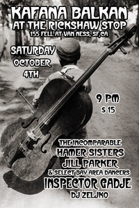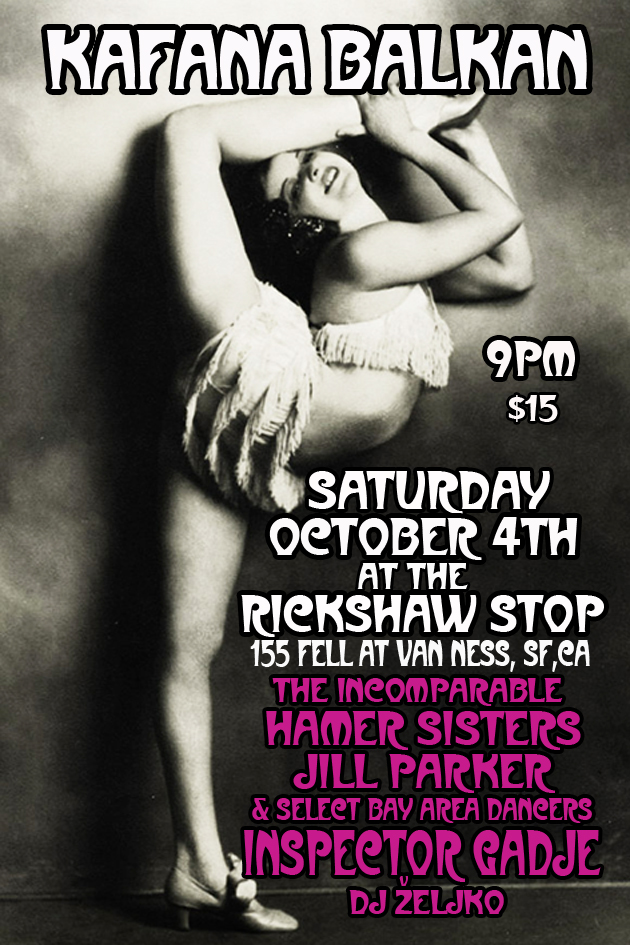 With the amazing Inspector Gadje, the incomparable Hamer Sisters, the exceptional Jill Parker and select Bay Area Dancers and Kafana Balkan Mastermind and Producer DJ Zeljko.
