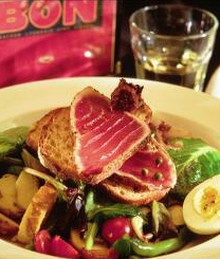 This Francophile’s dream strives to be all things to all people. A lush outdoor street café is perfect for a warm Marin evening -- the place to catch the bustling scene strolling a historic tree-lined thoroughfare, or simply to gaze at the Lark Creek Inn across the street (Larkspur’s other dining claim to fame). The indoor 25-foot mahogany bar elbows its way into the dining room and attracts a sizable crowd for increasingly intoxicated conversation, the ample wine and cocktail menu, and live jazz and blues on Tuesday and Thursday evenings. Servers greet you warmly and with style -- their crisp white blouses turned tres continental with a vibrant scarf trailing behind. - Karen Solomon