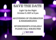 Next Door Solutions to Domestic Violence Celebrates 46 years with Light Up the Night.Light Up the Night is an evening of celebration and remembrance for those who have overcome or fallen to domestic violence.Next Door Solutions, which offers support, shelter and self-sufficiency services for victims of domestic violence and their children, will be holding Light Up the Night, an open house to showcase its services and share a survivor’s account of how the organization has affected her life. The evening will conclude with a candle ¬lighting ceremony.