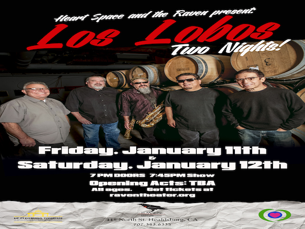 Los Lobos, the grammy award winning, legendary rock band makes its LONG awaited return to the Raven! "One of the best live bands in America.” Dancing will be throughout the entire audience area. Reserved Seating will also have floor access for dancing. Standing room only will have floor access but not be assigned/allocated any seats.Sponsored in part by Healdsburg Tourism Improvement District.