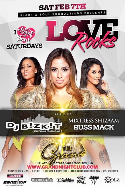 Join us this Saturday for LOVE ROCKS to experience all that The Grand has to offer!The Grand’s radiant gold interior, decadent decor, and sophisticated production details redefines nightclub entertainment in San Francisco. Two floors boast five separate levels of elevation for maximum visibility of the dance floor, which is surrounded by lavish VIP table seating. Your senses will be titillated by a Grand LED Ball consisting of 30,000 individual lights, mind-blowing visuals, strobe flashes, and custom made cryogenic system. No expense has been spared to deliver the most opulent venue in the city.