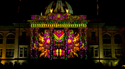 Light up your Tuesday nights this spring and come experience Redwood City Improvement Association’s new, colorful 3-D video mapping display, the Magic Lantern 3-D Show, starting Tuesday, Feb. 9. The new Magic Lantern 3-D Show is designed by world-renowned light show artist, Bart Kresa. The one-of-a-kind display will be projected onto the San Mateo County History Museum every week on Tuesday nights for two free 15-minute shows. Come and enjoy the show on opening night at 7:00 p.m. and 8:00 p.m.Kresa has designed the new Magic Lantern 3-D Show display to celebrate spring time in Redwood City. The pop-driven projection-mapping show will transform the San Mateo County History Museum into a colorful and abstract visual party. The music sings about “all the world,” welcoming visitors from all over to experience the show. Don’t miss out on the festive animations throughout the spring season recognizing holidays including Valentine’s Day, St. Patrick’s Day, Easter, Cinco de Mayo and Giants Opening Day!