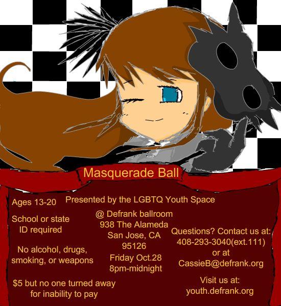 The LGBTQ Youth Space is super excited for teir annual Halloween Dance, MASQUERADE BALL, on Friday, October 28th!Featured at this year's dance is a haunted house along with dancing, food, music, photos, and plenty of chances to hang out with friends as well as meet new people.