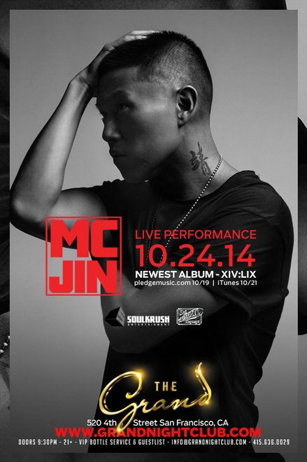 Join us as we welcome MC JIN to The Grand Nightclub for a special live performance this Friday!Jin Au-Yeung, also known as MC Jin, is a hip-hop artist, television host, and actor. He first garnered national attention in 2002 when he stunned audiences on BET's 106 and Park Freestyle Fridays competition. Remaining undefeated for 7 weeks, he ultimately landed a record deal with the Ruff Ryders. With a new found focus and team at The Great Company, MC Jin recently released his full-length English album and is set to hit The Grand stage for a special live performance this Friday you don't want to miss!