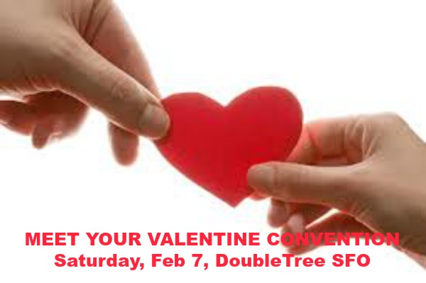•Valentine Speed Dating, Sunday, Feb 8, 4pm, Sinbad’s at Pier 2, next to the Ferry Bldg, 141 The Embarcadero, San Francisco. $20/advance or $30/door. 5 tickets only for each of four sections: Women under 40, Men under 40, Women over 40, Men over 40.