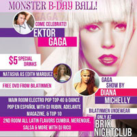 Come celebrate Ektor Gaga's birthday BRIX Nightclub with $5 drink specials. A Gaga show will be put on by Diana Michelly and Natasha as Edith Marquez.The main room will play electro pop, Top 40 and dance.