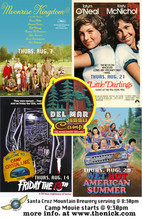 Del Mar Summer Camp geared for adults lines up four Camp themed films in the month of August.Every Thursday in August come to the Del Mar and do some arts & crafts while enjoying fine local organic ale from The Santa Cruz Mountain Brewing at 8:30pm then see the camp flick at 9:30pm and earn your merit badge!