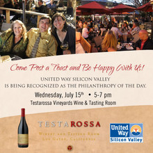 Thanks to Testarossa Vineyards’ generosity, 15% of proceeds of Happy Hour sales will go directly to United Way Silicon Valley programs.
