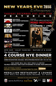 Join 2 of the most respected names in Bay Area Nightlife as we team up once again on the BIGGEST Party Night of the Year & present "New Year's Eve 2014 Extravaganza" at the Seductive, Stylish & Elegant MEDALLION Restaurant & Lounge! This event is one not to be missed!