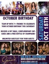 Celebrate your October Birthday this Saturday night with 7+ friends and receive a complimentary VIP table, a bottle of bubbles and cupcakes on us!Please be sure to call or text (415) 636-0029 to reserve your Cupcakes & Bubbles package!