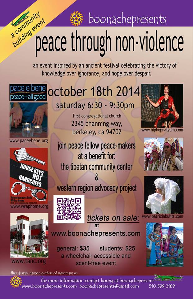 an evening of dance, music, spoken word, and food and the proceeds will go to benefit Western Regional Advocacy Project (WRAP) as well as Tibetan Association of Northern California (TANC).the event is inspired by diwali: an ancient festival celebrating the victory of knowledge over ignorance, and hope over despair