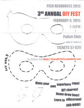 Join us for Peer Resources' 3rd Annual Do It Yourself Fest! Come for a fun time and to learn new skills. For the price of admission, you can learn how to make your own churros, homemade bitters, superhero mask, and nail art. You can also learn how to clog dance, among many other DIY stations.Food and drinks will be available. This is a family friendly event.