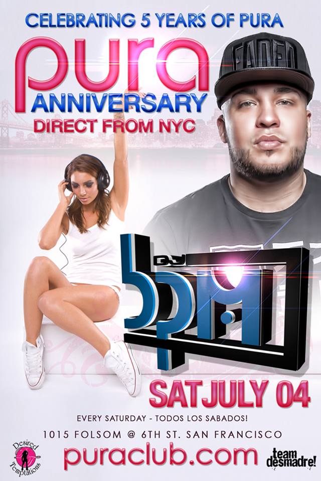 Pura 5 Year Anniversary | DJ BPMParty this and every Saturday at the Bay Area’s hottest upscale nightclub!