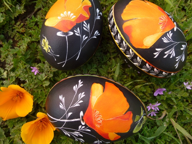 ‘Decorating hollowed chicken, duck or goose eggs is one of the few ancient still surviving art forms of Eastern Europe. Styles, colors and techniques of decorating vary depending on the region.