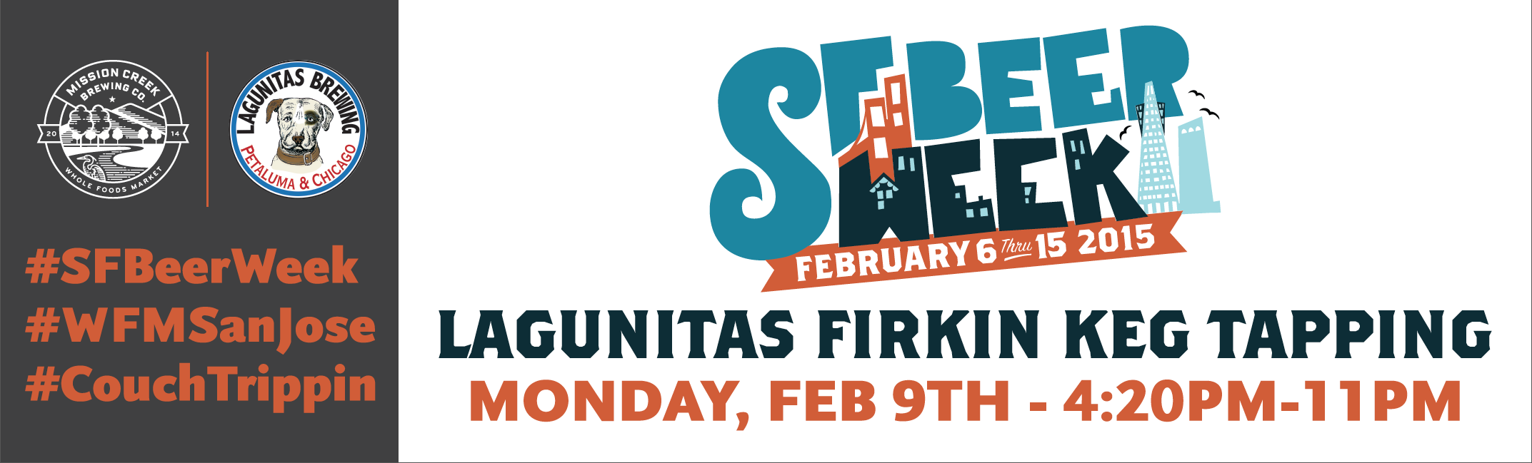 Lagunitas Brewing Co is doing a complete Tap Takeover and releasing the SF Beer Week Lagunita’s fusion beer. Join us as we take over the Mission Creek Building with parting Lagunitas style. Grab a beer, take a seat on the couches, join in on a game, grub on some munchies and have the best Monday of the year!