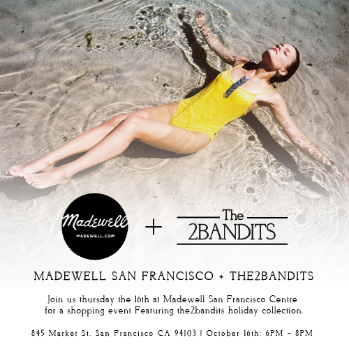 Join designer Tamar Wider as The 2Bandits hosts a very special holiday shopping event at Madewell! Be among the first to shop the 2B holiday collection in person, chat with the designer, enjoy some complimentary cocktails and if you're one of the first to arrive, pick up an awesome free gift.