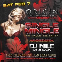 Join us this Saturday for a special Pre-Valentine's Celebration for singles to mingle. Find your 2015 Valentine at Origin Boutique Nightclub! Bring your sand to our beach!!! Bring a member of the opposite sex and get free admission with line cuts! It's that easy!Expect dancing lasers, confetti explosions and over-the-top special effects when the beat drops! There's nothing like sipping on tasty cocktails and dancing the night away on an energetic dance floor, surrounded by other fabulous people. Find your way to Origin's first-class nightclub production this Saturday to experience the ultimate nightlife experience.