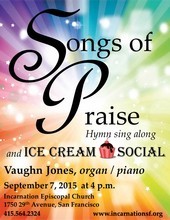 Celebrate Labor Day and the joy of singing hymns in our 'Songs of Praise and Ice Cream social' with Vaughn Jones, organist and pianist. Call out your favorite hymns from our hymnal and join us afterwards in an ice cream social.A great and unique way for the entire family and friends to end the Labor Day weekend.