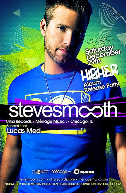 Ultra Record’s Steve Smooth returns to his spiritual home in San Francisco on Saturday December 29th for a holiday special. Hailing from Chicago, the home of house music, Steve has taken his skills as a DJ to over 30 different countries in the last 5 years and to over 100 shows just last year alone. His talent as a DJ is only matched by his proficiency as a producer. Steve has remixed for many artists such as Eric Prydz & Bad Boy Bill, with his remix of "Dancin" by Aaron Smith entering the Top 10 UK Pop Charts. His song "Stay" featuring vocalist Colette hit #1 on Beatport.com and was in BPM Radio's Top 20 of the year. Tonight he comes here hot on the heels of his album Higher released with Ultra in July. Support on the night comes from SF’s very own Lucas Med. This is not to be missed!